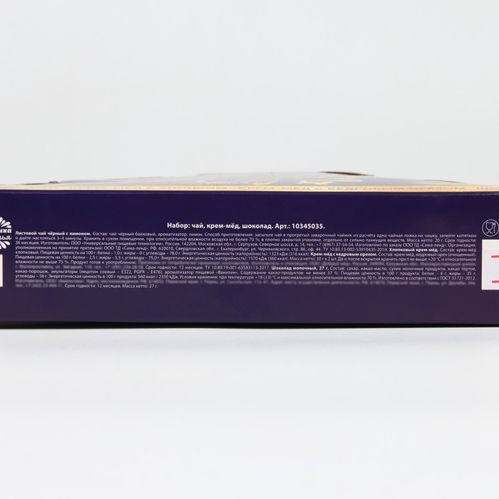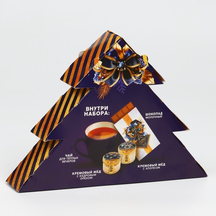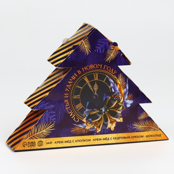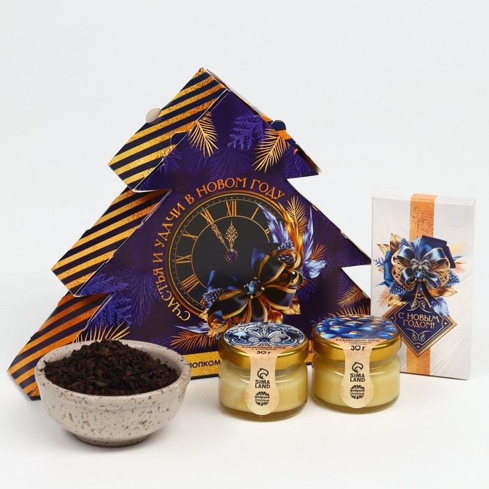 Новый год! Набор «Счастья и удачи в Новом году»: чай с лимоном 20 г, крем мёд с кедровым орехом 30 г, хлопковый крем мёд 30 г, шоколад молочный 27 г