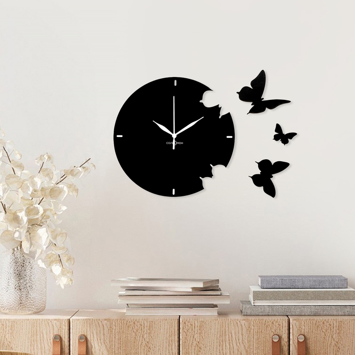 Настенные часы "Чёрная бабочка" — это не просто средство для измерения времени, а настоящий элемент интерьера, способный преобразить любое пространство. Их элегантный дизайн с изящными формами и глубоким черным цветом привлекает внимание и создает атмосферу утонченности. Благодаря своей бесшумной работе, эти часы идеально подходят для спальни, кабинета или гостиной, где важен комфорт и тишина.