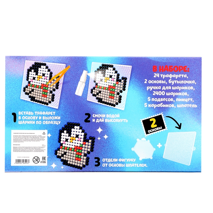 Аквамозаика от торговой марки «Эврики» скрасит дни в ожидании Нового года и поможет весело и с пользой провести время. Ребёнок соберёт 24 объёмных фигурки из шариков-пикселей, потренирует мелкую моторику и внимание.