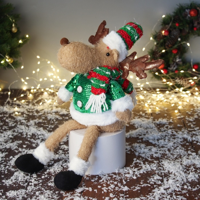 Мягкая игрушка "Олень в полосатом колпаке с длинными ножками" 60х17 см