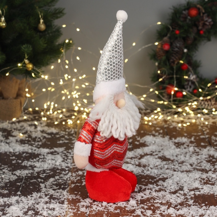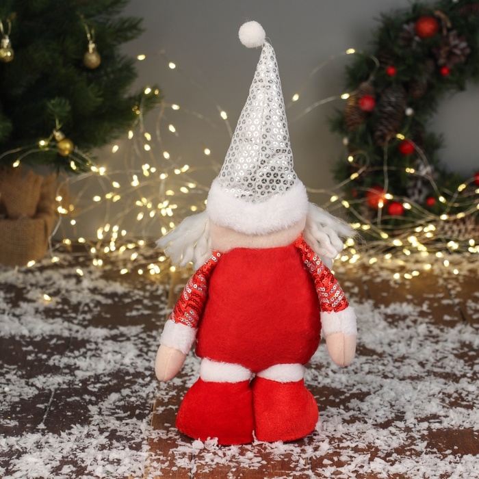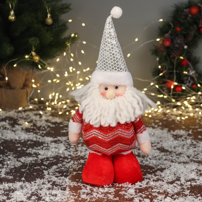 Мягкая игрушка "Дед Мороз в блестящем костюме" 35х16 см, красно-белый