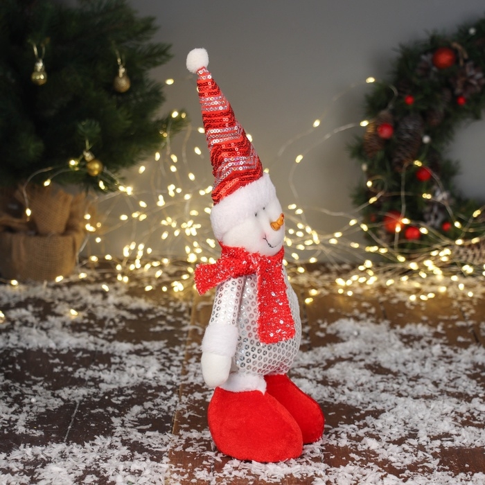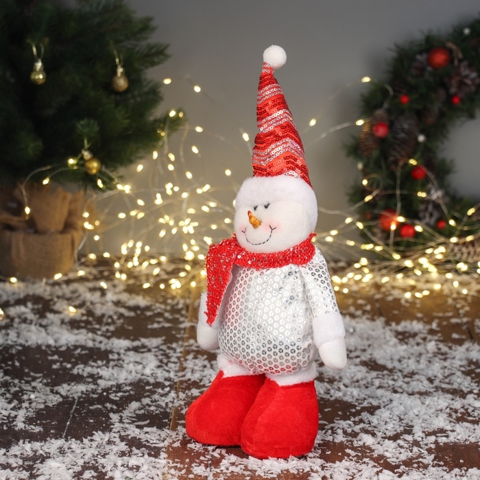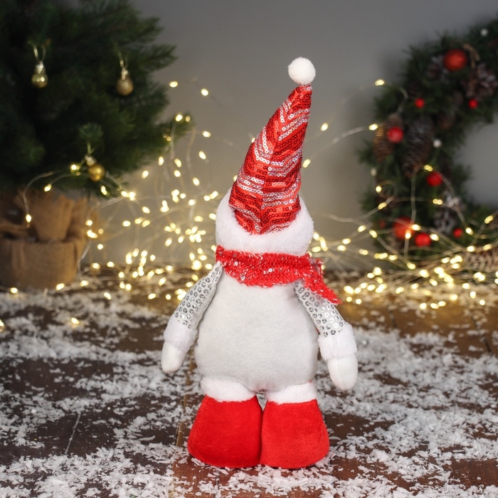 Мягкая игрушка "Снеговик в блестящем костюме" 36х17 см, красно-белый