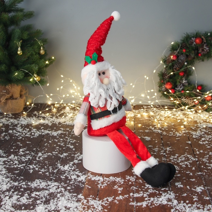 Мягкая игрушка "Дед Мороз с ремешком, длинные ножки" 58х20 см, красный