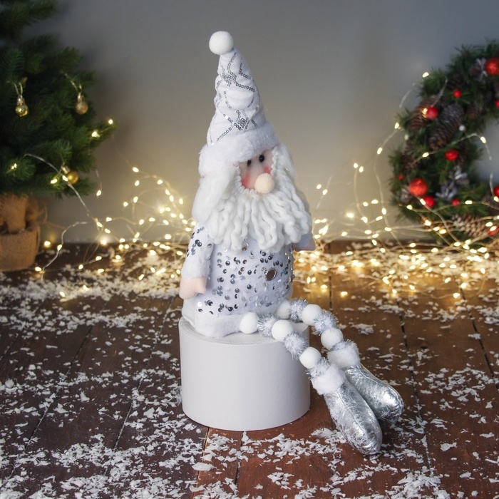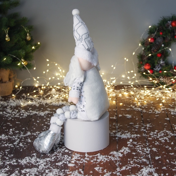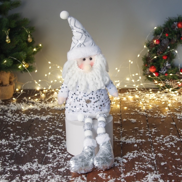 Мягкая игрушка "Дед Мороз в костюмчике с пайетками" 49х17 см, серебристо-белый