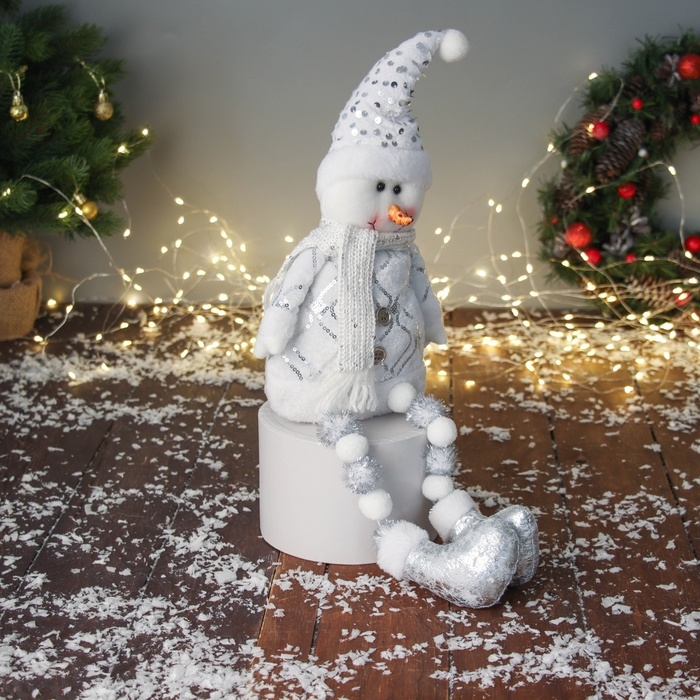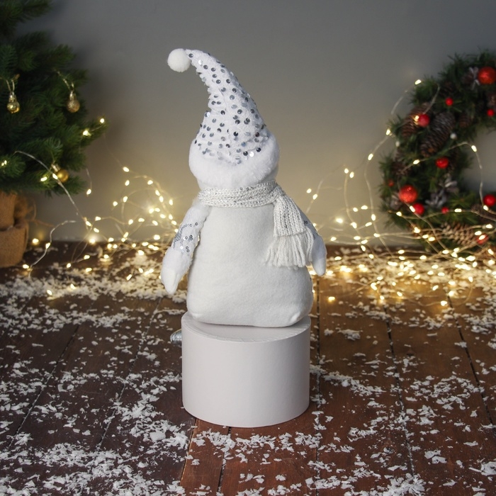 Мягкая игрушка "Снеговик в костюмчике с пайетками" 44х19 см, серебристо-белый
