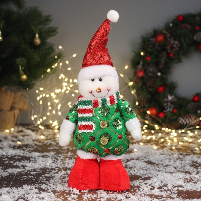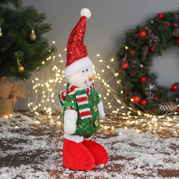 Мягкая игрушка "Снеговик в сияющем костюме" 34х17 см, красно-зелёный