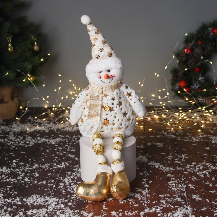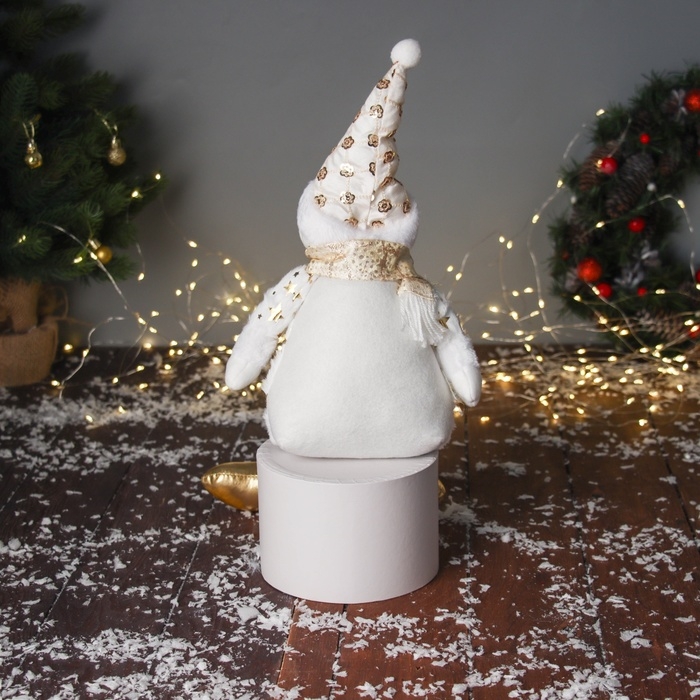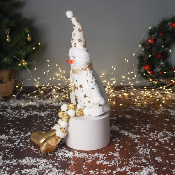 Мягкая игрушка "Снеговик в костюме со звёздами и в колпаке" 46х19 см, золотисто-белый