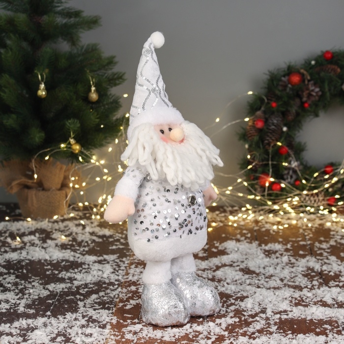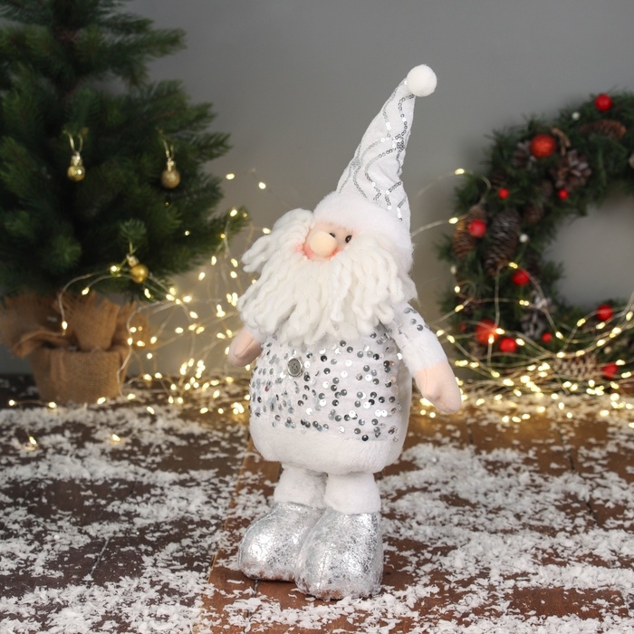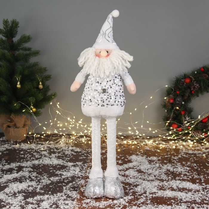 Мягкая игрушка "Дед Мороз блеск" (59х21 см выдвинутые ножки) 40х21 см, серебристо-белый