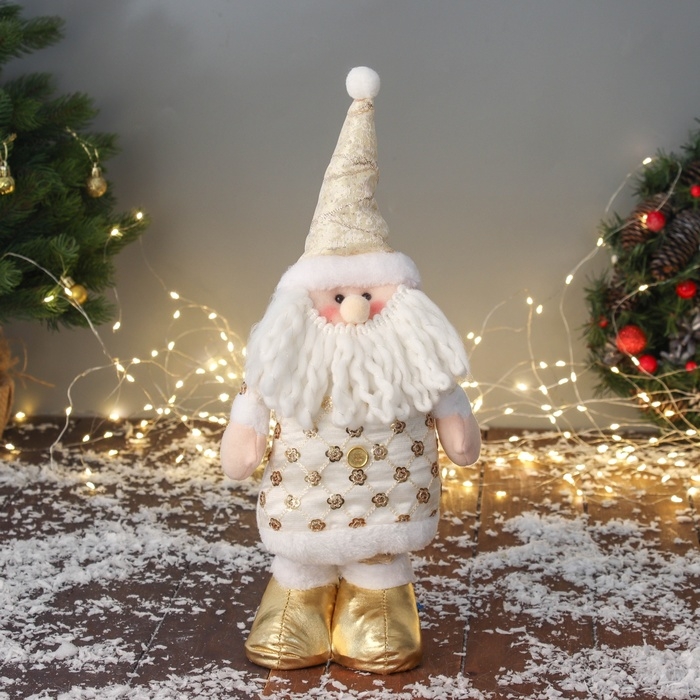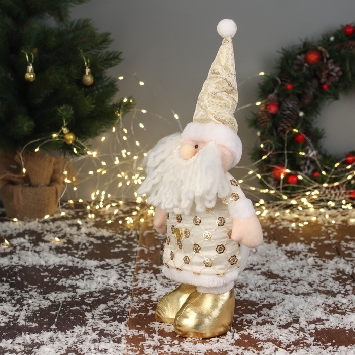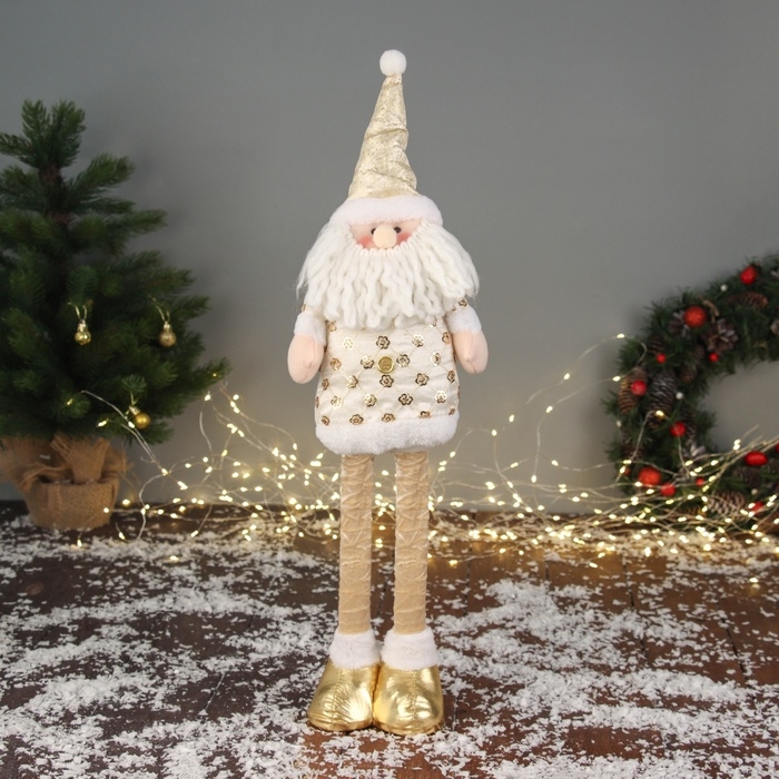 Мягкая игрушка "Дед Мороз цветочек" (59х21 см выдвинутые ножки) 40х21 см, золотисто-белый
