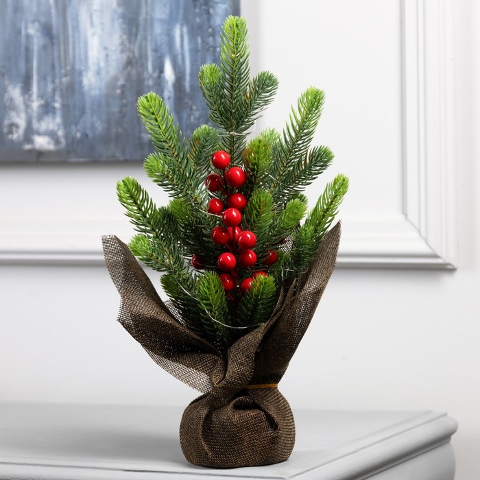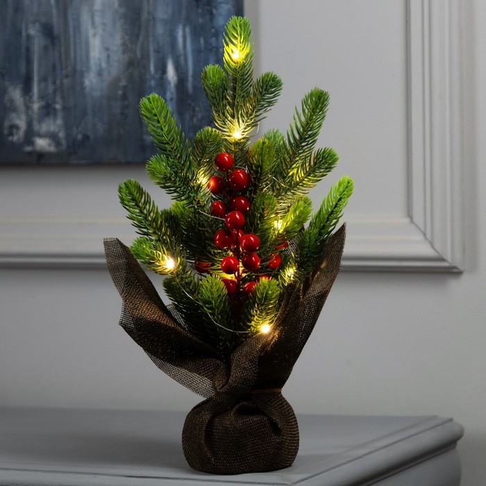 Фигура светодиодная «Ель и ягоды» 34 x18 x18 см, 10 LED, батарейки AG13x3 (в комплекте), свечение тёплое белое