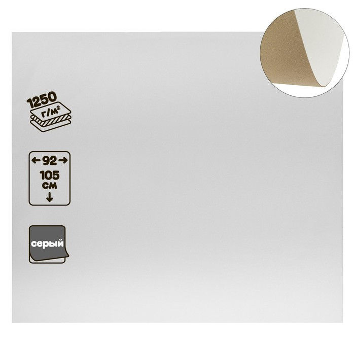 Картон переплётный (обложечный) 2.0 мм, 92 х 105 см, 1250 г/м2, серый