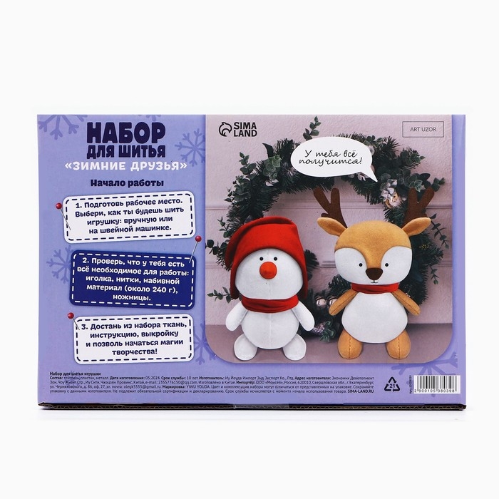 Набор для шитья. Мягкие игрушки своими руками на Новый год «Зимние друзья», новогодний набор для творчества, 23 см