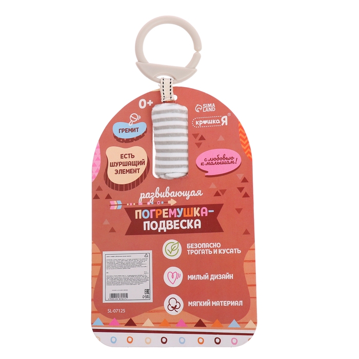 Развивающая погремушка-подвеска «Слон», цвет серый
