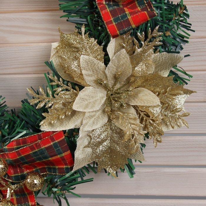 Венок новогодний d-30 см "Яркая сказка" цветы бантики