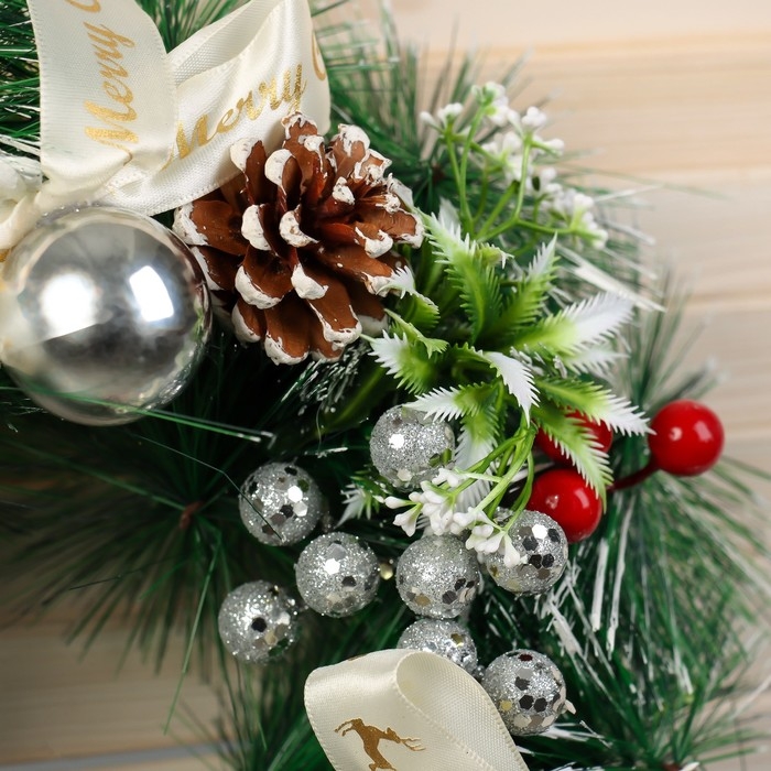 Венок новогодний d-30 см "Фестиваль блеска" бантики шишки ягоды