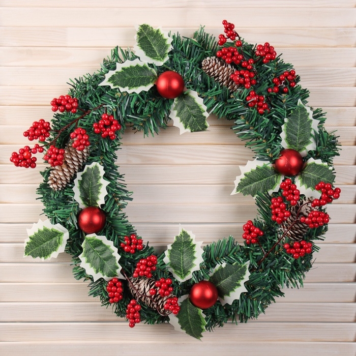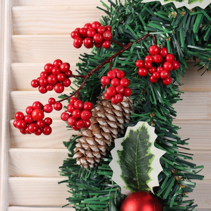 Венок новогодний d-40 см "Лесной фестиваль" веточки с ягодами листья