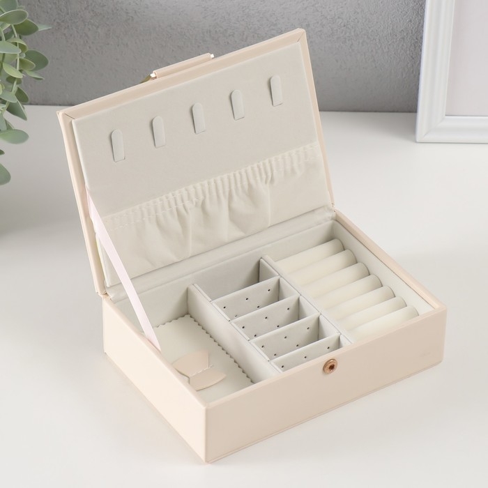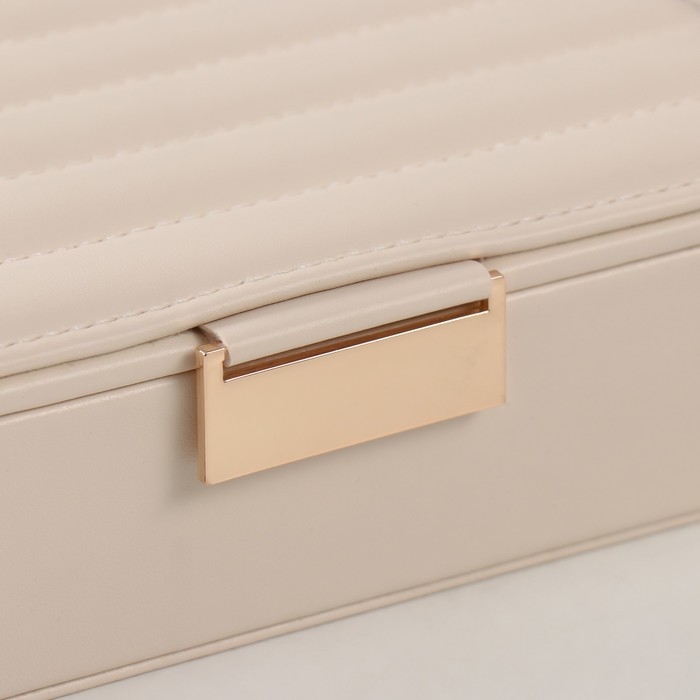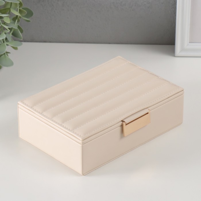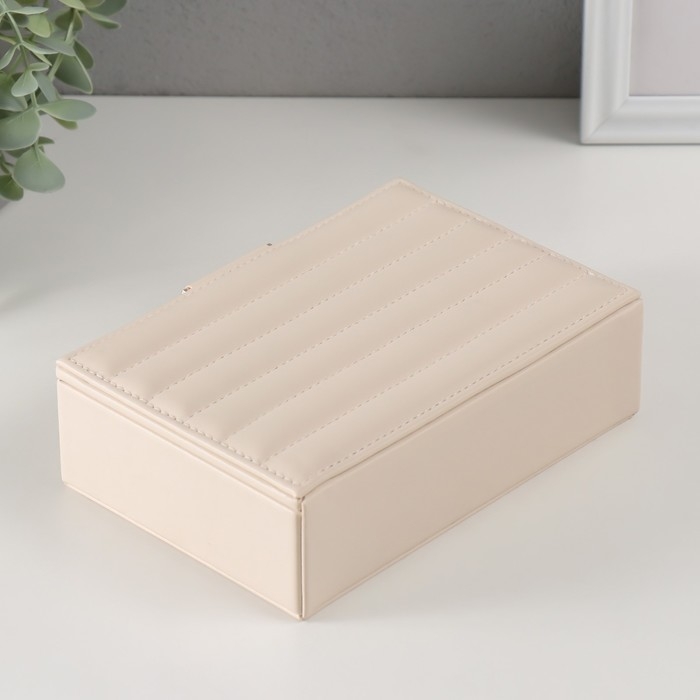 Шкатулка кожзам для украшений "Стёганная. Полоски" молочная 13х18х5,2 см