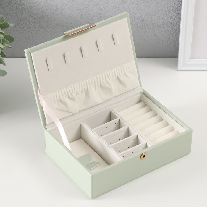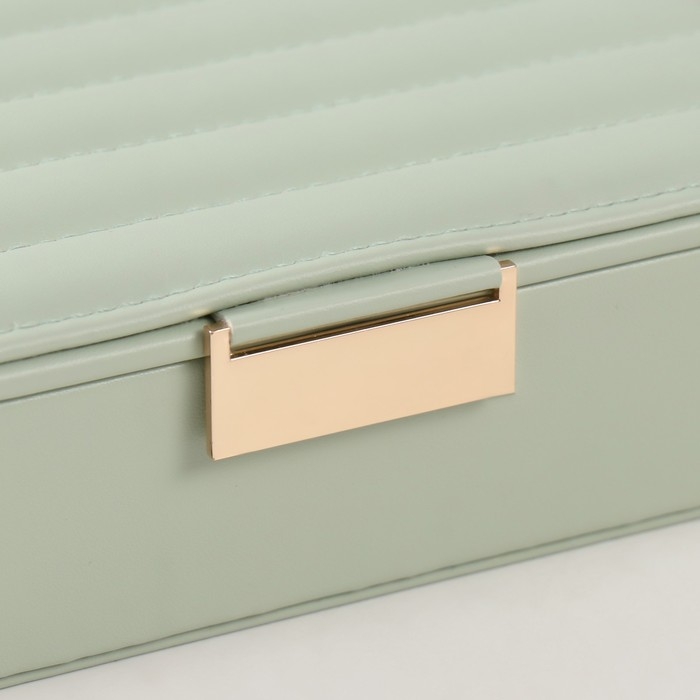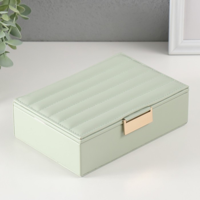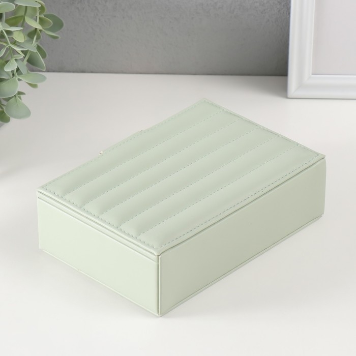 Шкатулка кожзам для украшений "Стёганная. Полоски" серо-зелёная 13х18х5,2 см