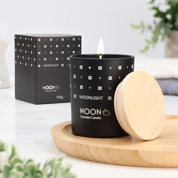 Свеча ароматическая в стакане "Moon", чёрный джентельмен, малая
