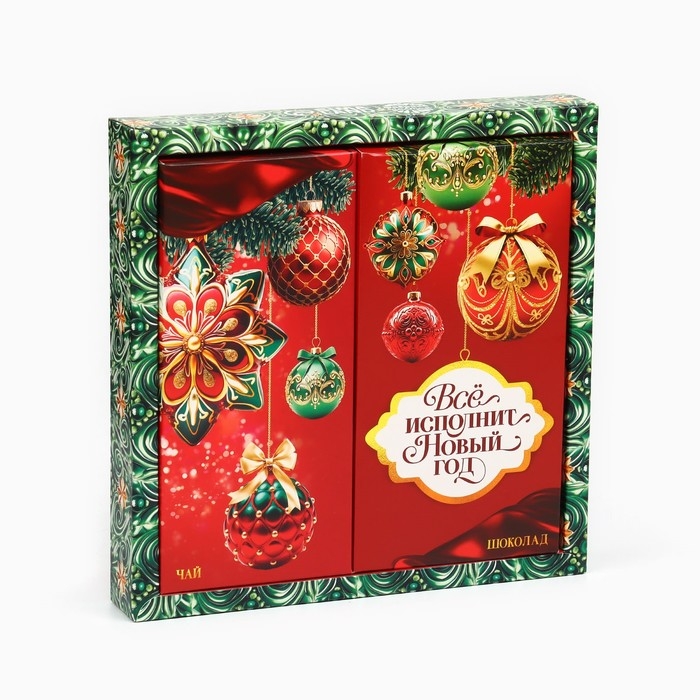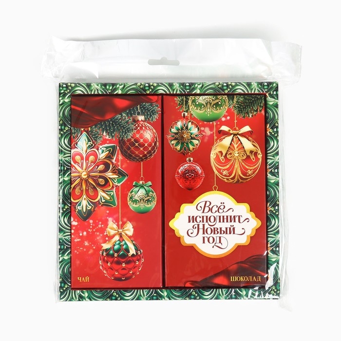 Новый год! Подарочный набор: шоколад, 70 г., чай чёрный со вкусом: Зимняя вишня, 20 г., «Всё исполнит Новый год»