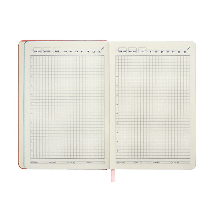Ежедневник недатированный A5, 140л, клетка, кожзам, на резинке, бирюзовый срез, Розовый