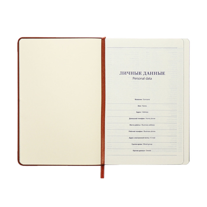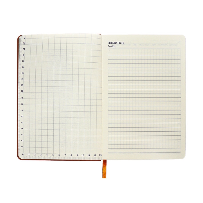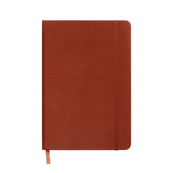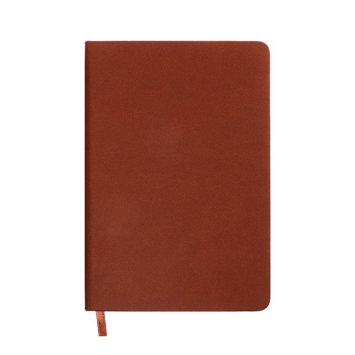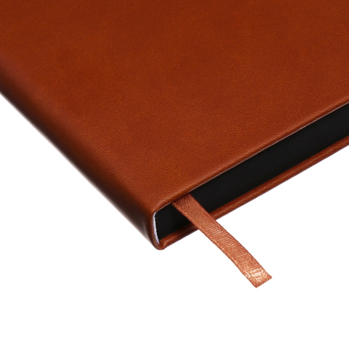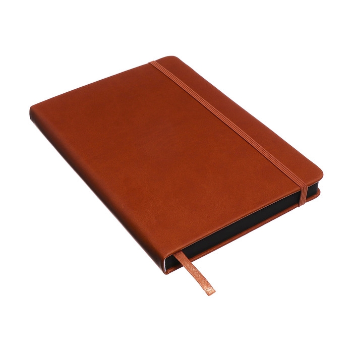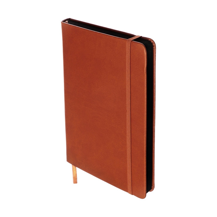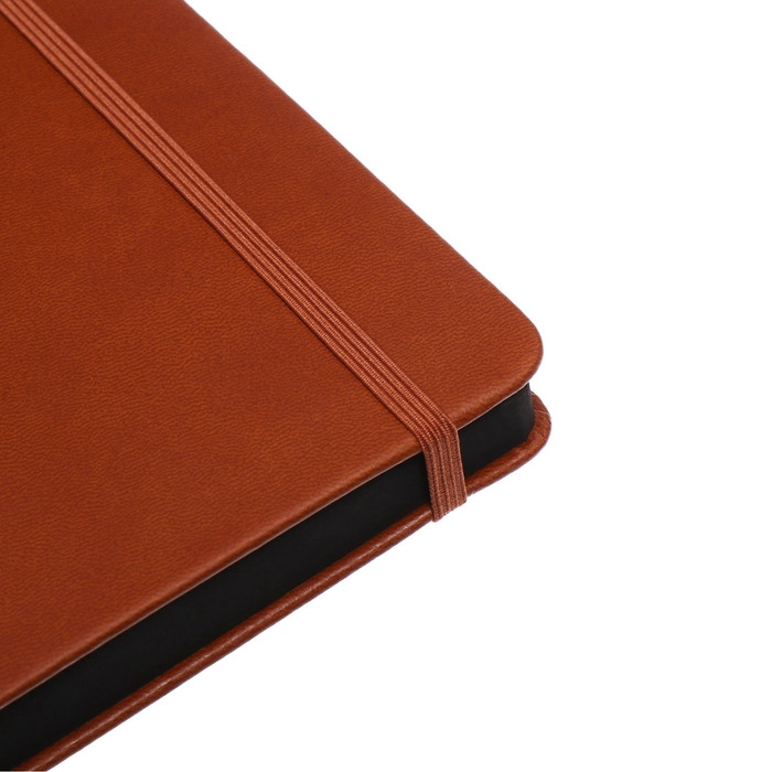 Ежедневник недатированный A5, 140л, клетка, кожзам, на резинке, черный срез, Коричневый