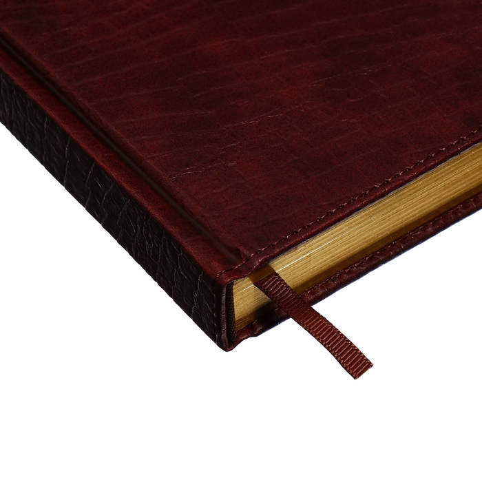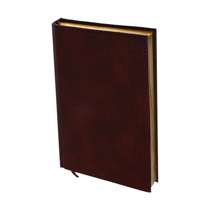 Ежедневник полудатированный, А5, 192 листа, линейка, обложка кожзам, золотой срез, "Крокодил", коричневый