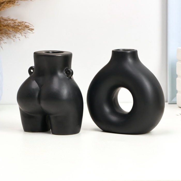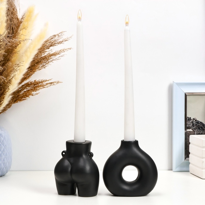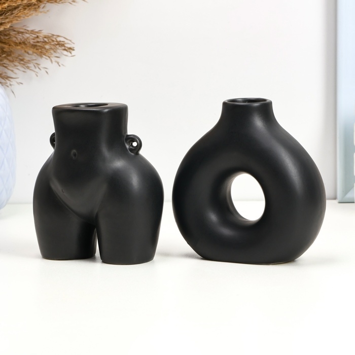 Набор подсвечников "Марта и Меланд" черный глянец, 2шт/5х10см/10х8см
