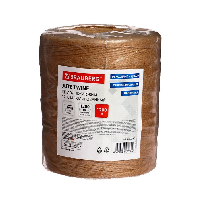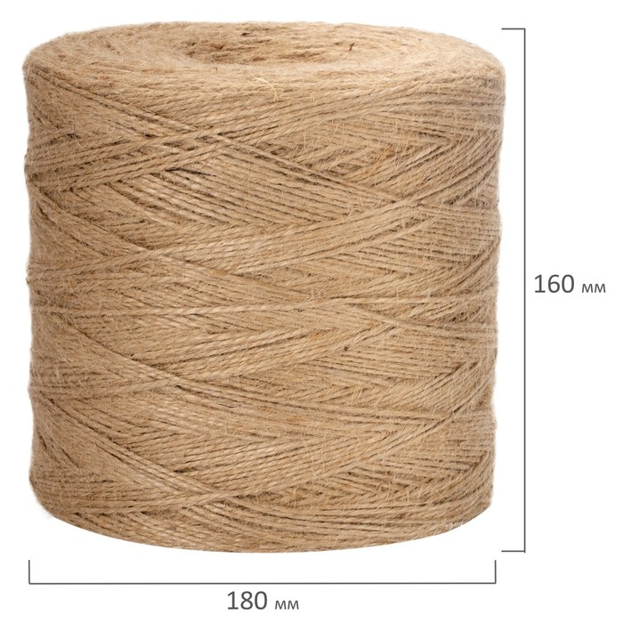 Шпагат джутовый банковский BRAUBERG, длина 1200 метров, диаметр 1.8 мм, полированный