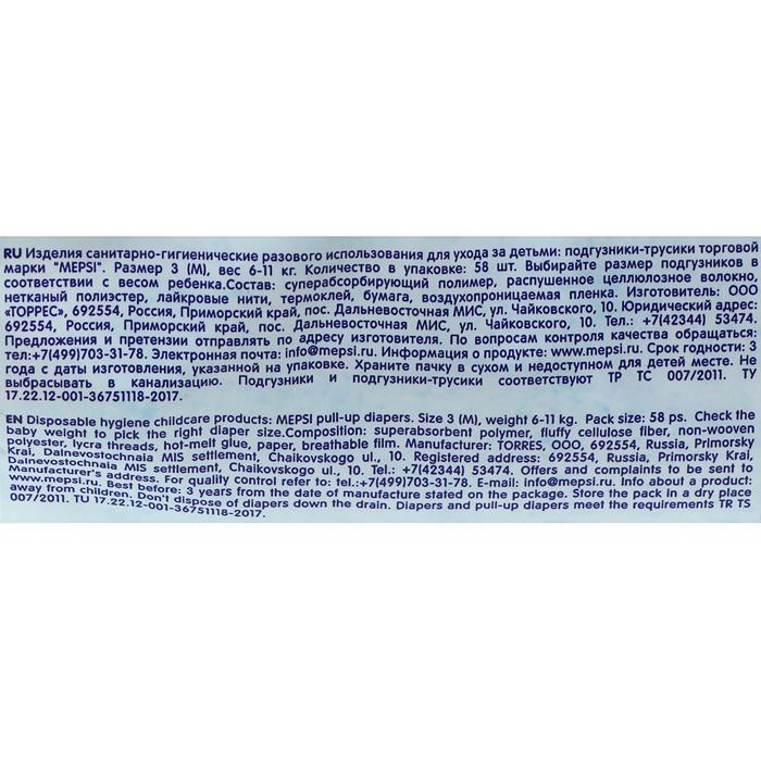 Подгузники-трусики Mepsi размер M (6-11 кг), 58 шт