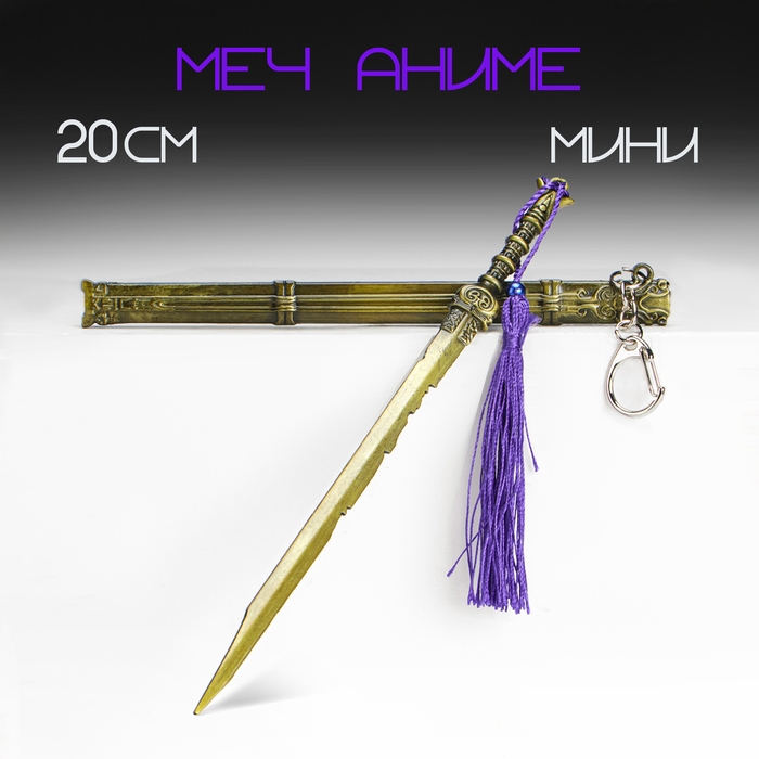 Сувенирное оружие подвесное мини "Меч в стиле аниме", брелок, 20 см, золотой с фиолетовым