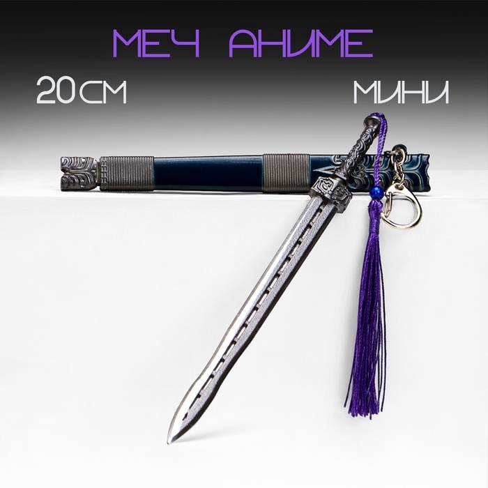 Сувенирное оружие подвесное мини "Меч в стиле аниме", брелок, 20 см, тёмно-синий
