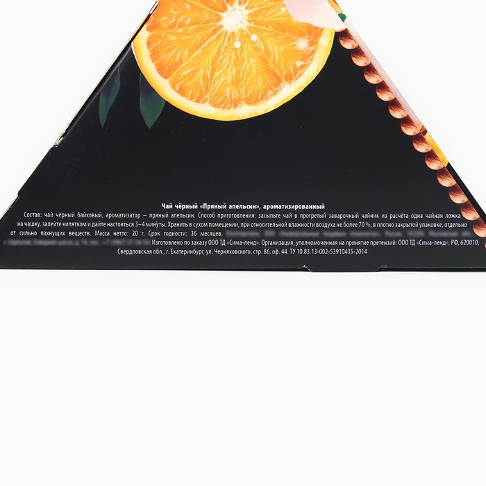 Состав: чай чёрный байховый, ароматизатор – пряный апельсин.