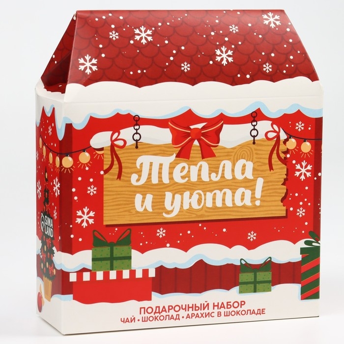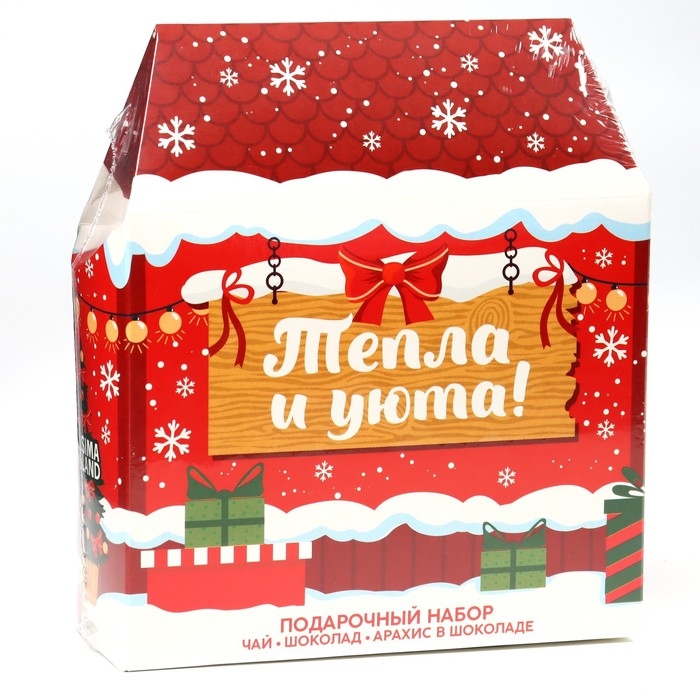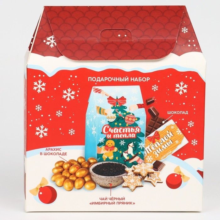 Новый год! Подарочный набор «Тепла и уюта» : чай чёрный: имбирный пряник, 50 г., шоколад молочный, 27 г., арахис в глазури 100 г