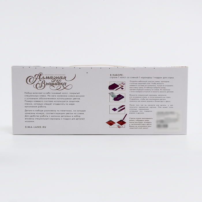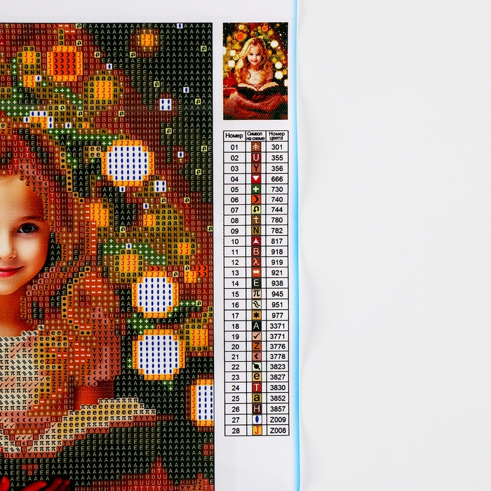 Вам предстоит разложить кристаллики карандашом по пронумерованной схеме. Холст с клеевым покрытием будет надёжно удерживать стразы.