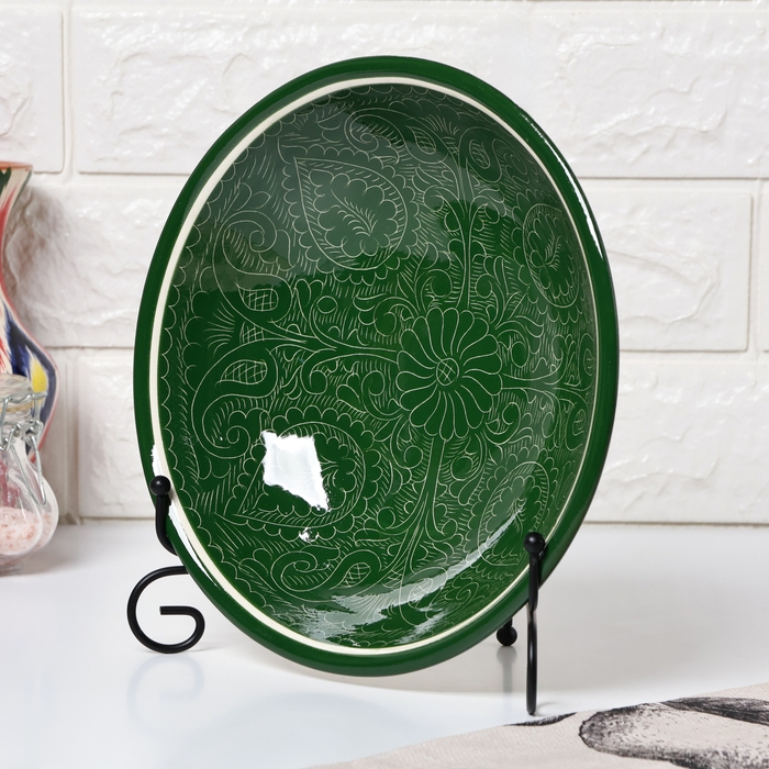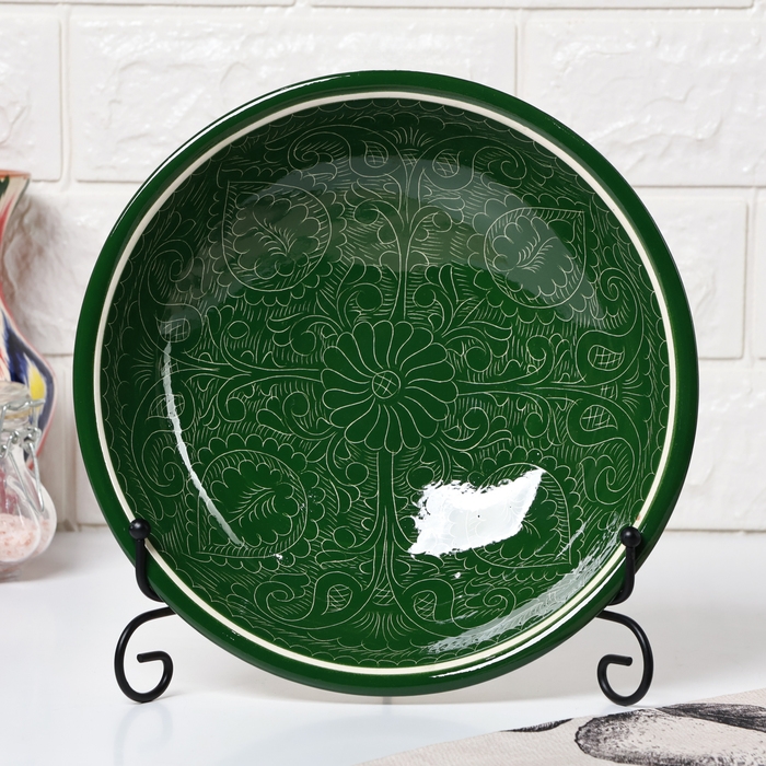 Супница Риштанская Керамика "Узоры", 23 см, зелёная