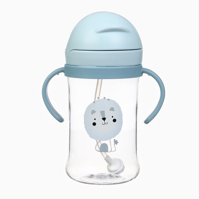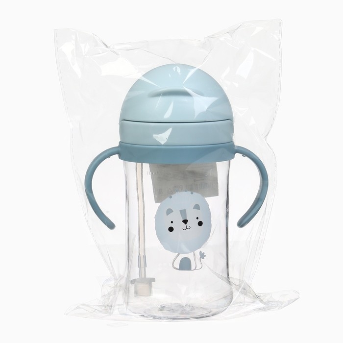 Поильник - непроливайка детский с силиконовой трубочкой и грузиком, от 9 мес., 350 мл., с ручками, цвет голубой, Крошка Я