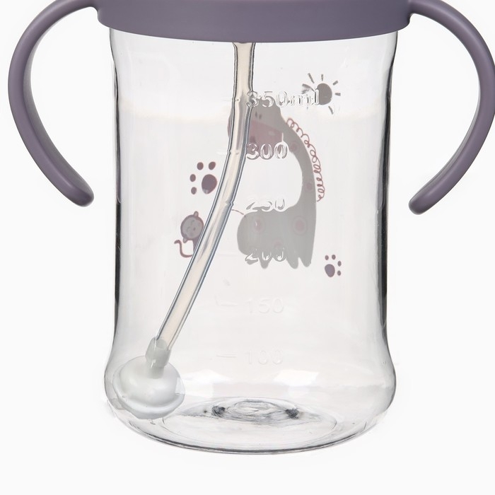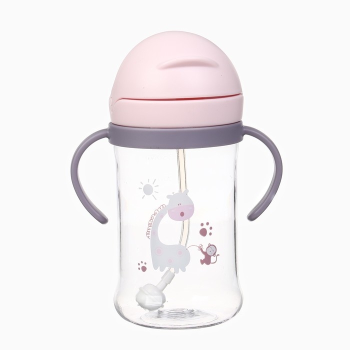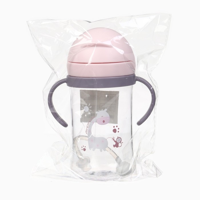 Поильник - непроливайка детский с силиконовой трубочкой и грузиком, от 9 мес., 350 мл., с ручками, цвет розовый, Крошка Я
