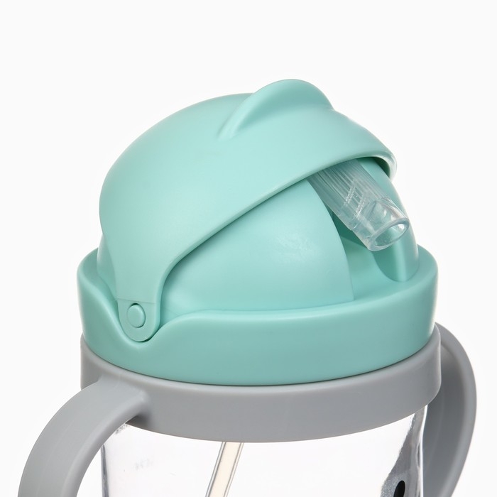 Поильник - непроливайка детский с силиконовой трубочкой и грузиком, от 9 мес., 350 мл., с ручками, цвет бирюзовый, Крошка Я