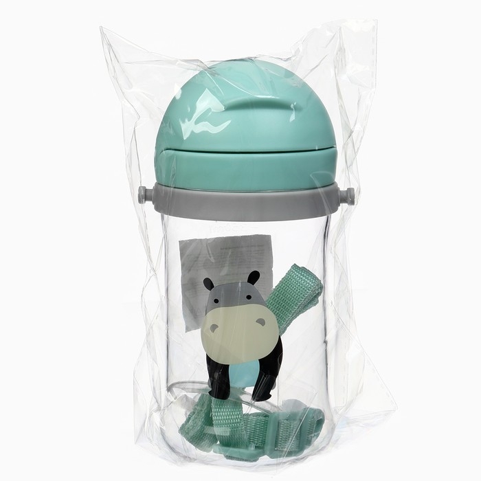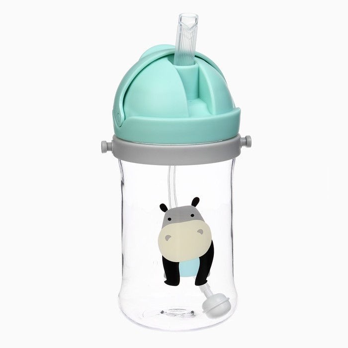Поильник - непроливайка детский с силиконовой трубочкой и грузиком, от 9 мес., 350 мл., на ленте, цвет бирюзовый, Крошка Я