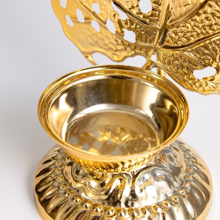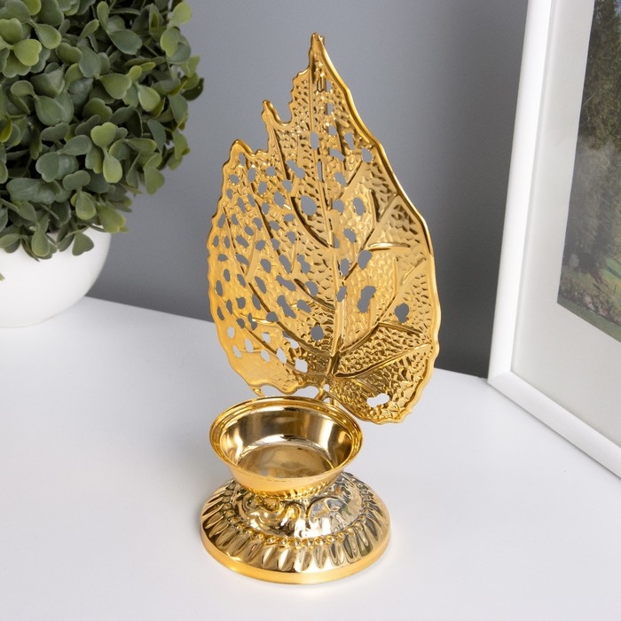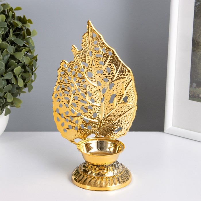 Подсвечник металл на 1 свечу "Скелетированный лист" золото d=4,7 см 7,5х10,5х20,5 см
