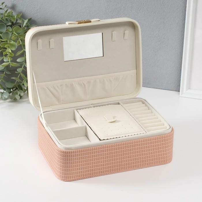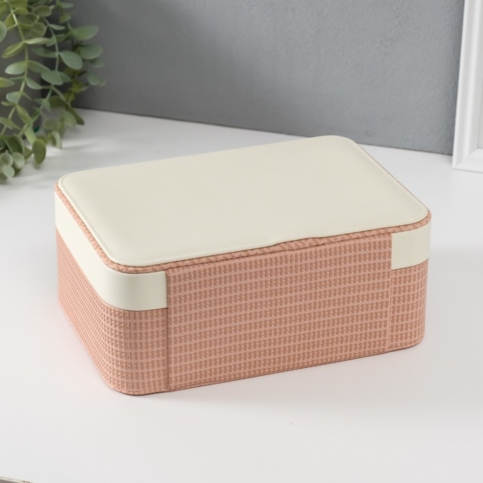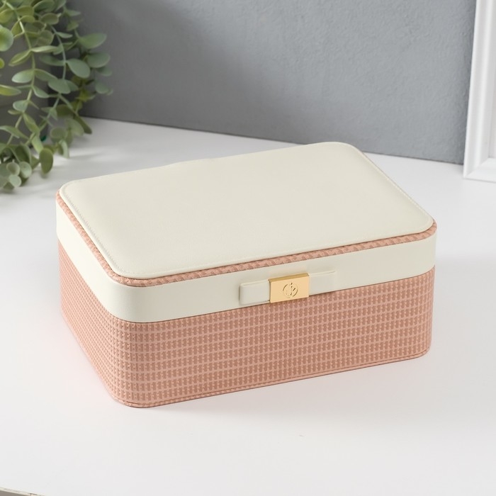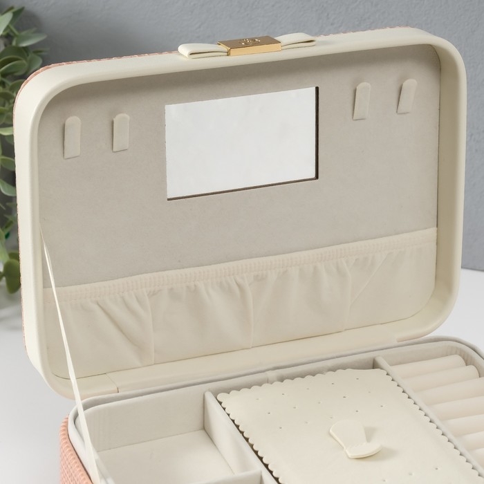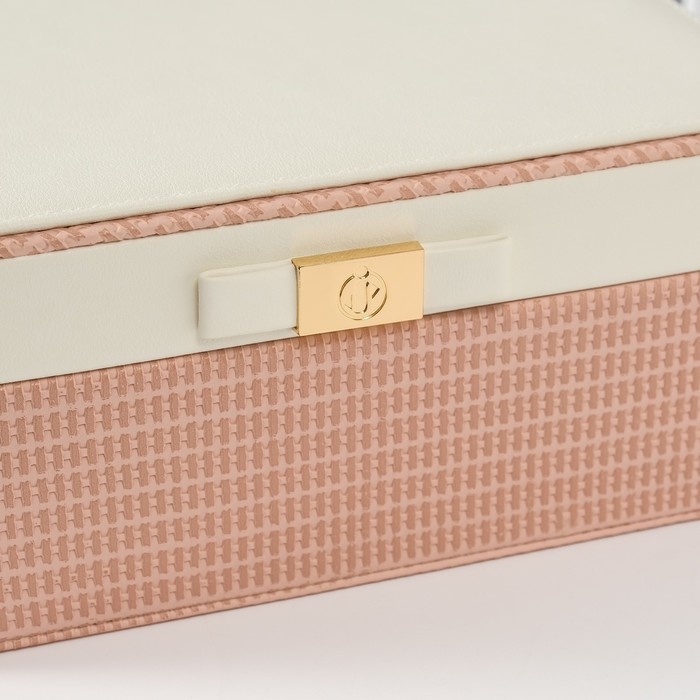 Шкатулка кожзам для украшений "Бантик" бело-розовая 17х23,5х10 см