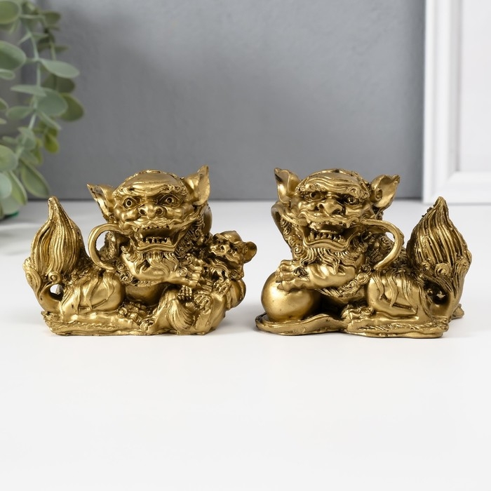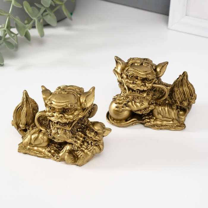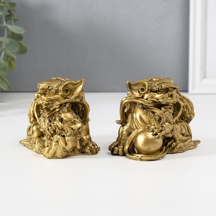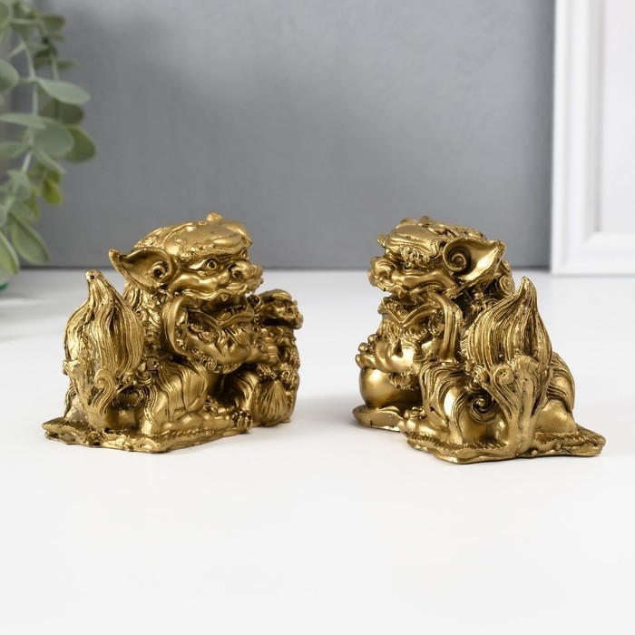 Нэцкэ полистоун "Небесные львы Будды" бронза набор 2 шт 5,2х8,7х6,5 см