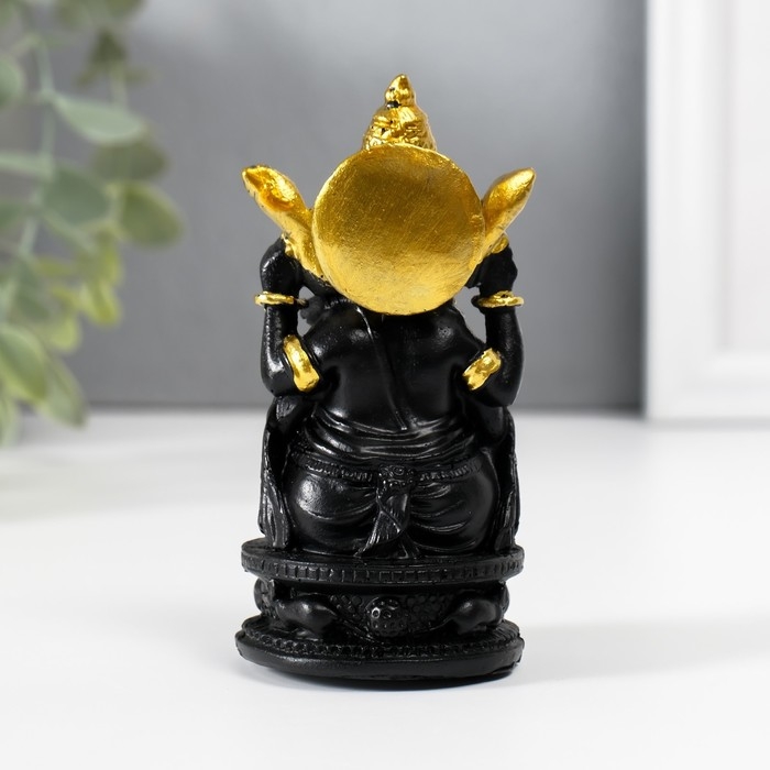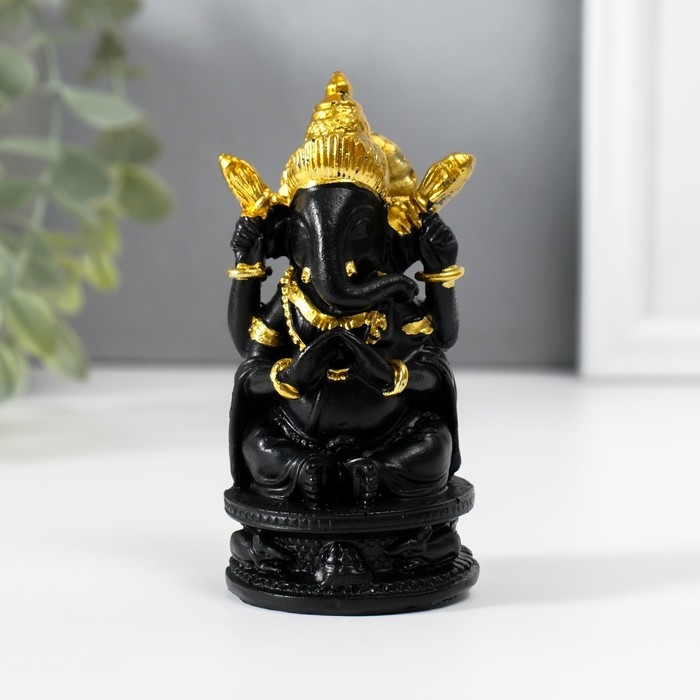 Нэцкэ полистоун "Ганеша в золотом головном уборе" чёрный 4,7х4,7х9,7 см