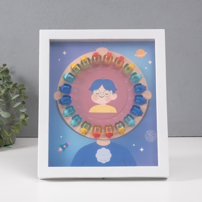 Фоторамка пластик 9х9 см "Молочные зубики" голубая 2х23х27 см