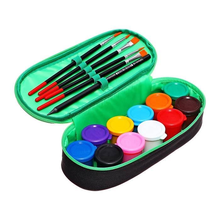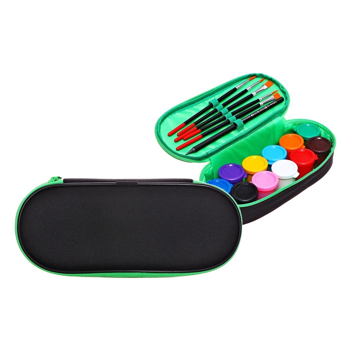 Пенал мягкий, 1 отделение, 95 х 205 х 45 мм, футляр, с наполнением 17 предметов, гуашь 11 цветов, Calligrata, Black