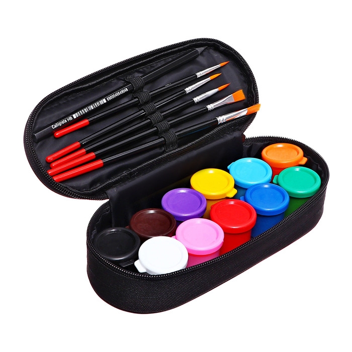 Пенал мягкий, 1 отделение, 95 х 205 х 45 мм, футляр, с наполнением 17 предметов, гуашь 11 цветов, Calligrata, School
