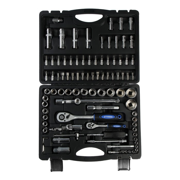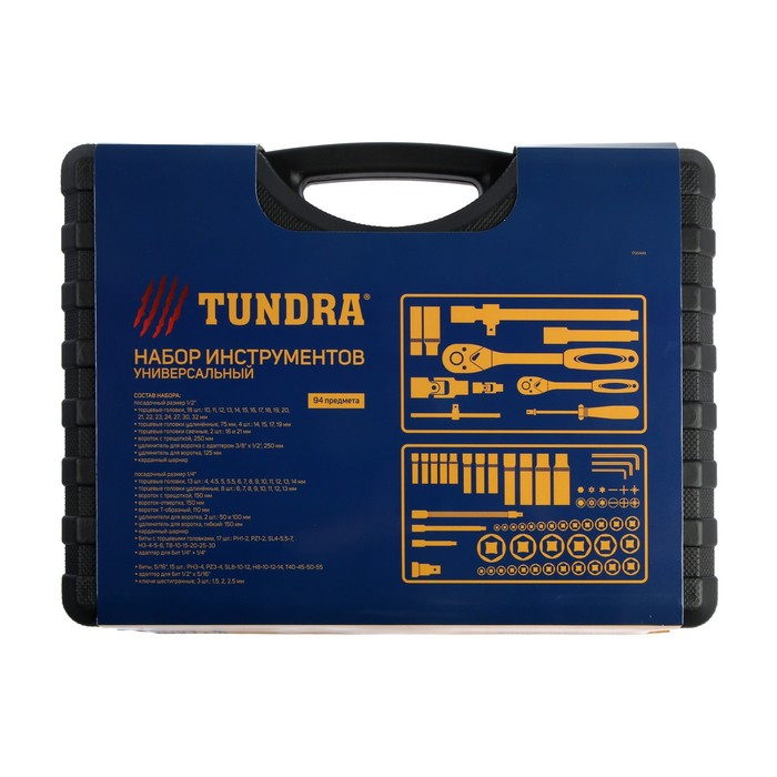 Набор инструментов в кейсе ТУНДРА, автомобильный, CrV, 1/2" и 1/4", 94 предмета