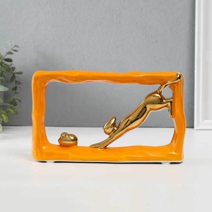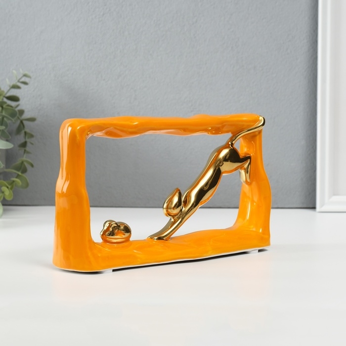 Сувенир керамика "Кошки-мышки - погоня. Прямоугольник" оранжевый с золотом 5,5х21,5х13 см