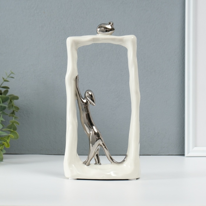 Сувенир керамика "Кошки-мышки - охота. Прямоугольник" белый с серебром 6,2х12х24,5 см